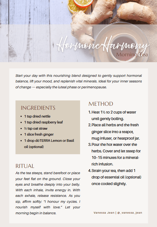 Wholeness Within is a 95-page wholefood recipe book rooted in seasonal rhythms, hormone nourishment, and deep soul remembrance. You’ll find vibrant herbal infusions, warming elixirs, hormone-supportive meals, raw treats, infused oils, and simple sacred kitchen rituals — all crafted with your nervous system, digestion, and emotional well-being in mind.